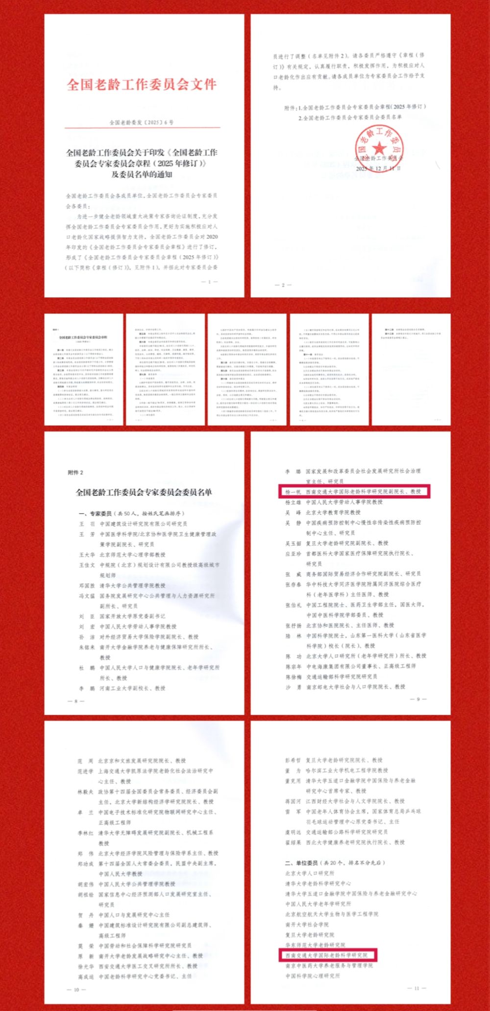 根据章程,全国老龄工作委员会专家委员会是国家老龄工作决策的核心咨询机构,旨在为实施积极应对人口老龄化国家战略提供科学、专业的智力支持。委员须在人口、经济、社会保障、卫生健康、城市规划等多领域具备深厚造诣,并兼具全球视野。国际老龄科学研究院凭借其突出的科研实力、国际化的研究平台与前沿的跨学科融合模式,成功跻身这一国家级高端智库行列,是我校文科优新战略和智库建设的重要进展。