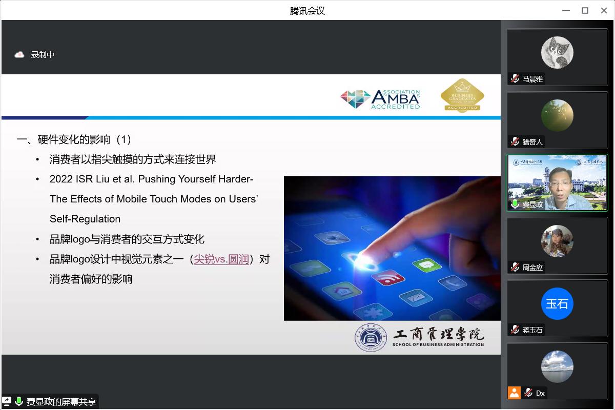 随后,费显政教授着重分析了“中国最新的本土实践问题——世界的前沿”中最为典型的“移动互联网和新媒体带来的变化”,即“指尖的蝴蝶效应”,从“硬件变化的影响”、“前置场景所引发的蝴蝶效应”、“所嵌入场景的潜移默化”等角度归纳解读其发表于Journal of Consumer Psychology、《管理世界》、《南开管理评论》等国内外权威期刊的学术论文,为经济管理学院师生探索如何扎根中国实践提炼科学问题提供了借鉴和指导。
